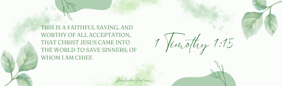 15 This is a faithful saying, and worthy of all acceptation, that Christ Jesus came into the world to save sinners; of whom I am chief. 1 Timothy 1:15 KJV