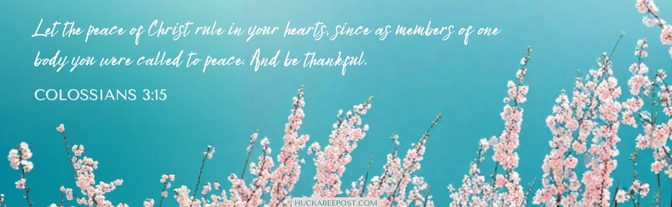 Let the peace of Christ rule in your hearts, since as members of one body you were called to peace. And be thankful. Colossians 3:15