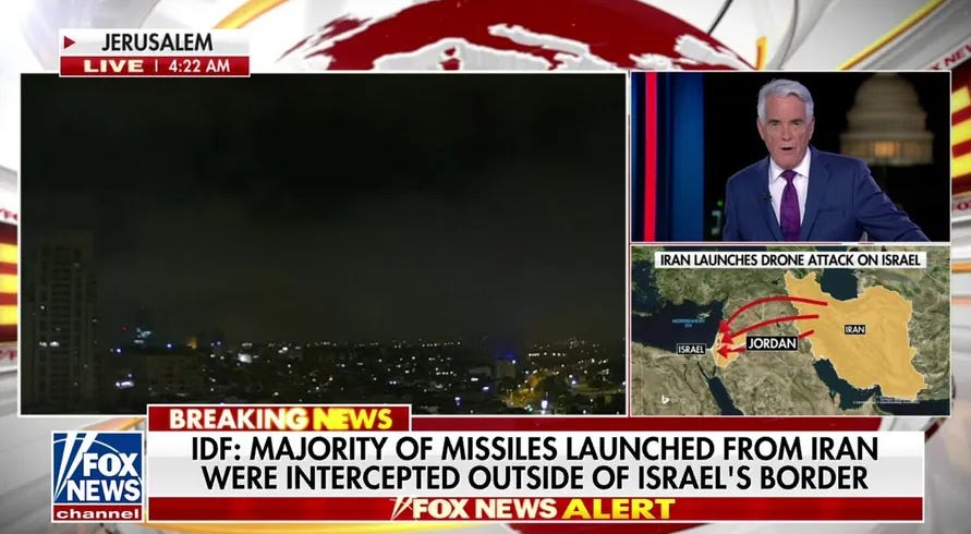 Iran Attacks IsraelSaturday evening, Iran finally made good on its years of threats and launched a direct attack on Israel, sending 185 drones and 110 missiles. Huckabee PostApr 15, 2024∙ Paid91656SharePhoto credit: Fox NewsThe Morning Edition is a reader-supported publication. To receive new posts and support my work, consider becoming a free or paid subscriber.SubscribeBlessings on you and your family from all the Huckabee team!Today, if you have a moment, leave me a comment about something you read. Comments show that we have an active community of readers.…Continue reading this post for free, courtesy of Huckabee Post.Claim my free postOr purchase a paid subscription.PreviousNext