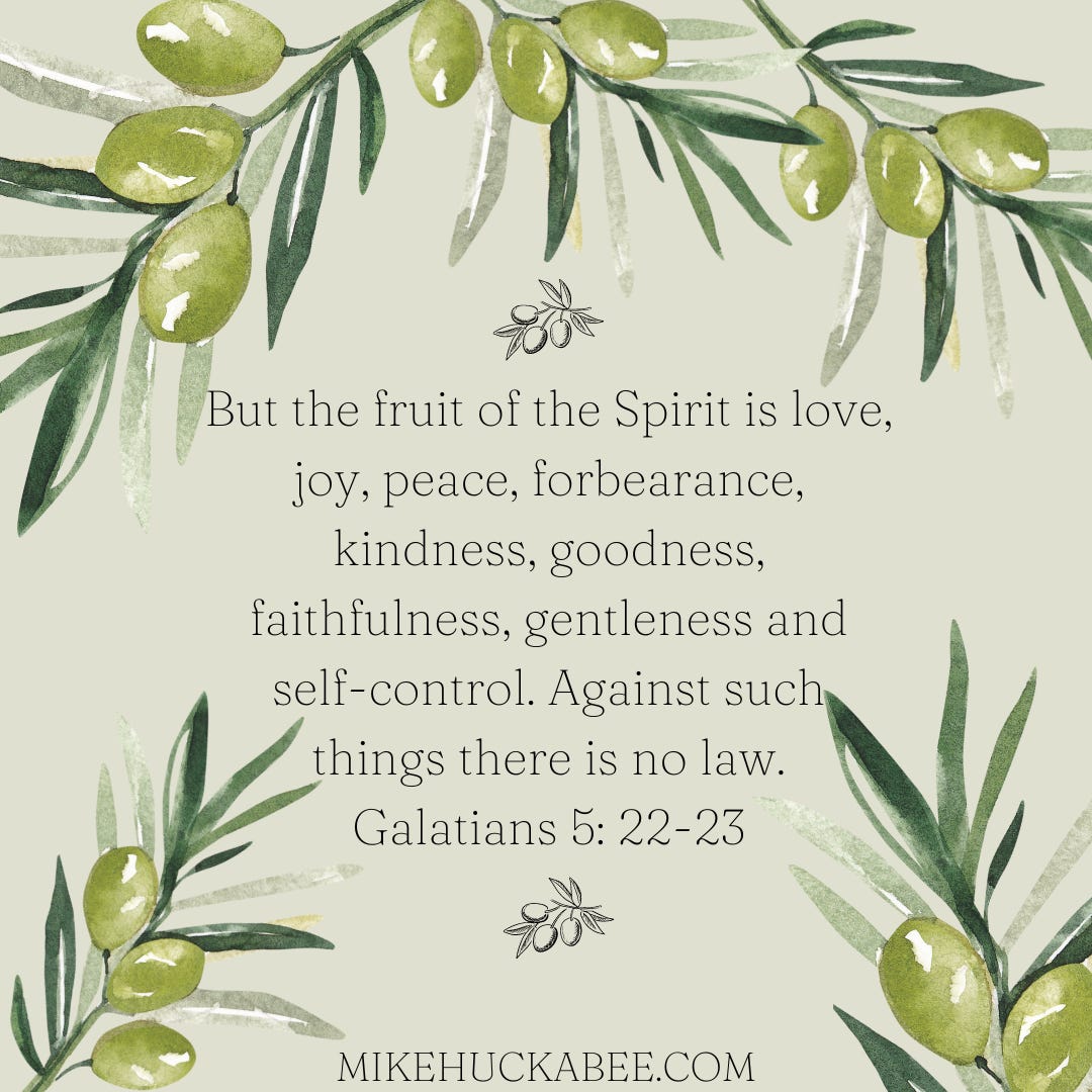 22 But the fruit of the Spirit is love, joy, peace, forbearance, kindness, goodness, faithfulness, 23 gentleness and self-control. Against such things there is no law.