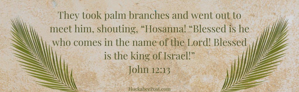 They took palm branches and went out to meet him, shouting, “Hosanna! “Blessed is he who comes in the name of the Lord! Blessed is the king of Israel!” John 12:13
