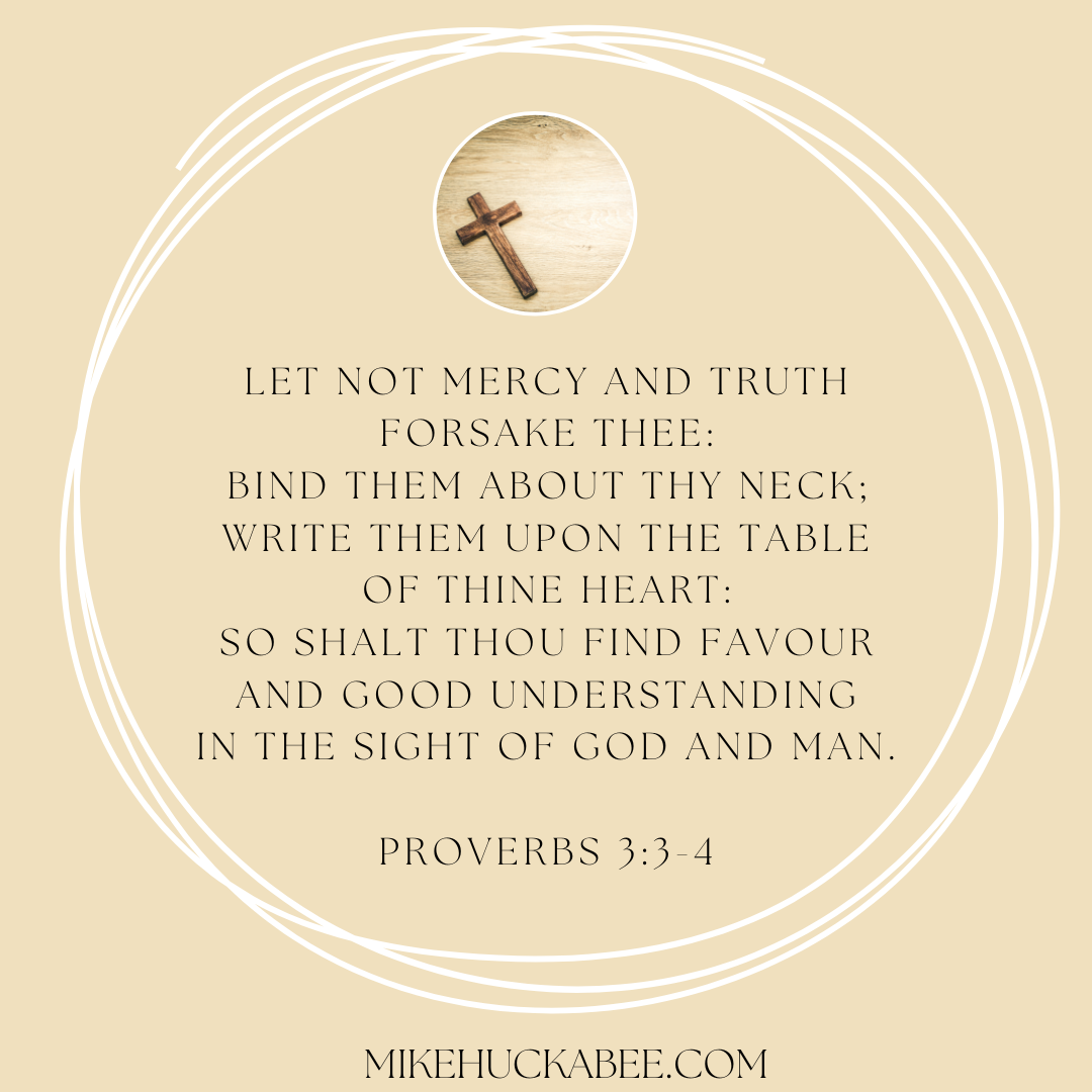 3 Let not mercy and truth forsake thee: bind them about thy neck; write them upon the table of thine heart: 4 So shalt thou find favour and good understanding in the sight of God and man.