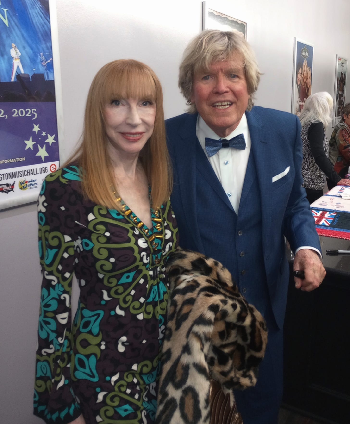 Friday night, my wife/co-writer Laura Ainsworth and I saw a great concert by Peter Noone of Herman’s Hermits (See photo of Laura in her ‘60s-inspired dress with Peter.)